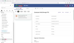 My Inbox provides a list of messages and actionable tasks within your UKG Pro Solution. You can access the My Inbox from any page within the UKG Pro by selecting the message indicator on the top navigation bar.